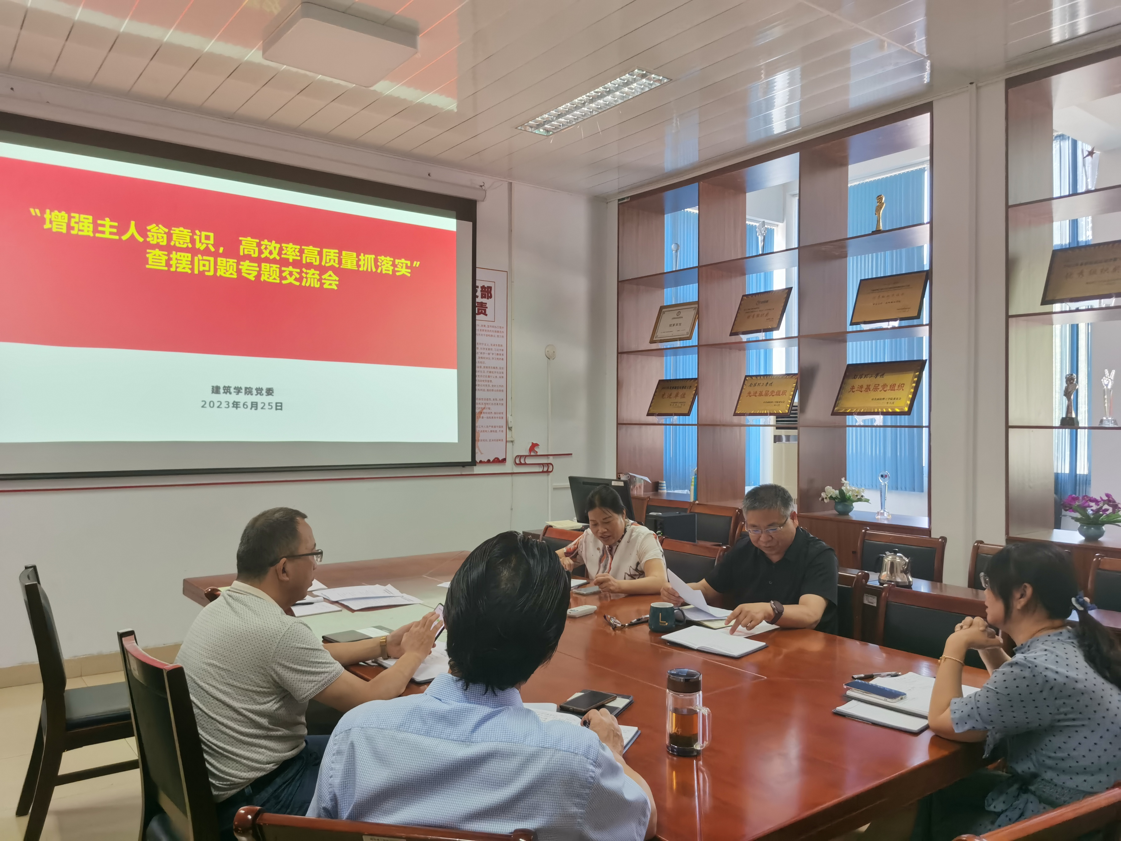 本网讯 6月25日,建筑学院在7 附101会议室组织开展“增强主人翁意识 高效率高质量抓落实”查摆问题专题交流会,党委班子成员参加。会议由学院党委书记田光辉主持。
