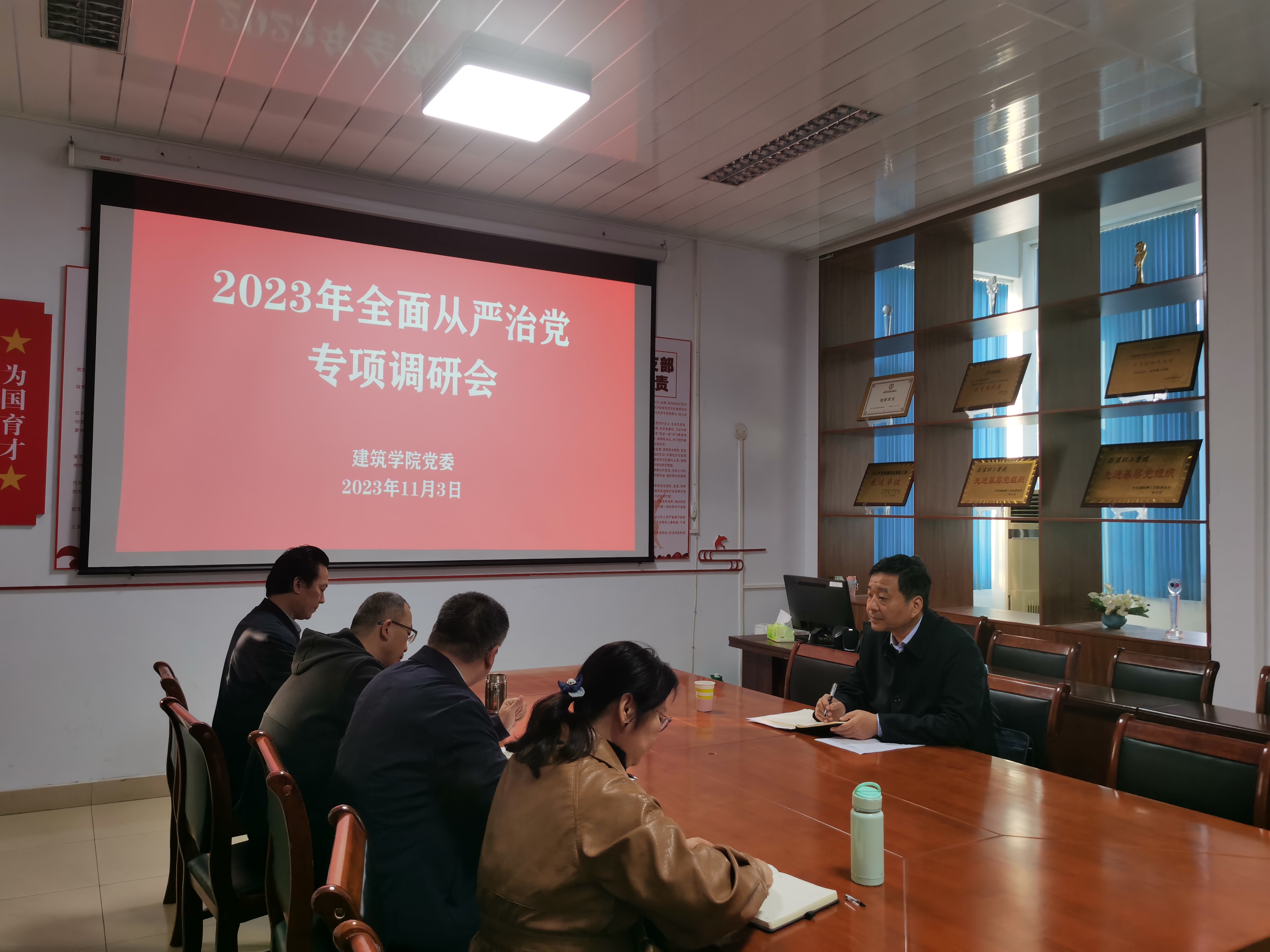本网讯(特约记者/杨菲)11月3日,校党委副书记董豪深入建筑学院,围绕全面从严治党工作开展专题调研。学院党委领导班子、党委委员参加会议。