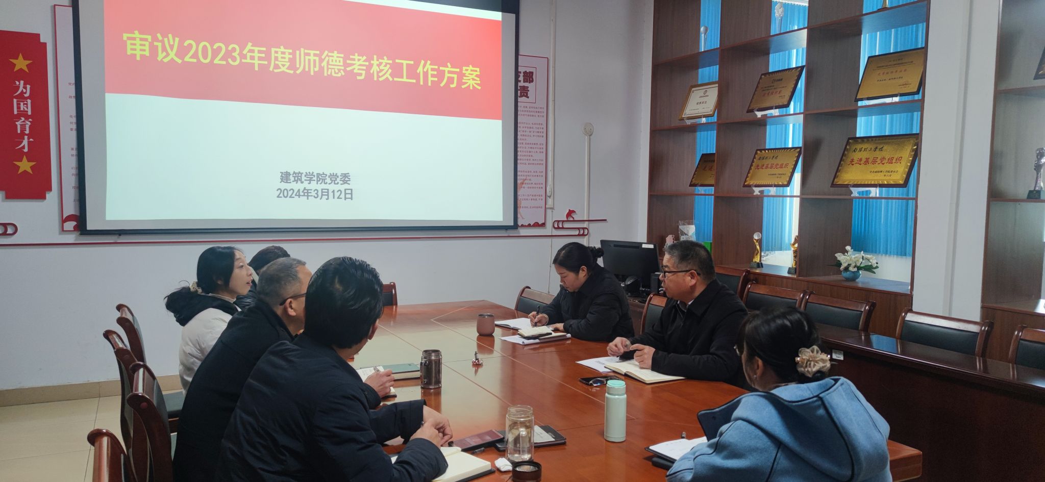 会议还传达学习了《领导干部报告个人有关事项规定》,研究了《建筑学院2023年度师德考核工作方案》,并具体安排部署了“师德讲堂”活动,明确责任分工,细化工作任务,确保工作落地落实。