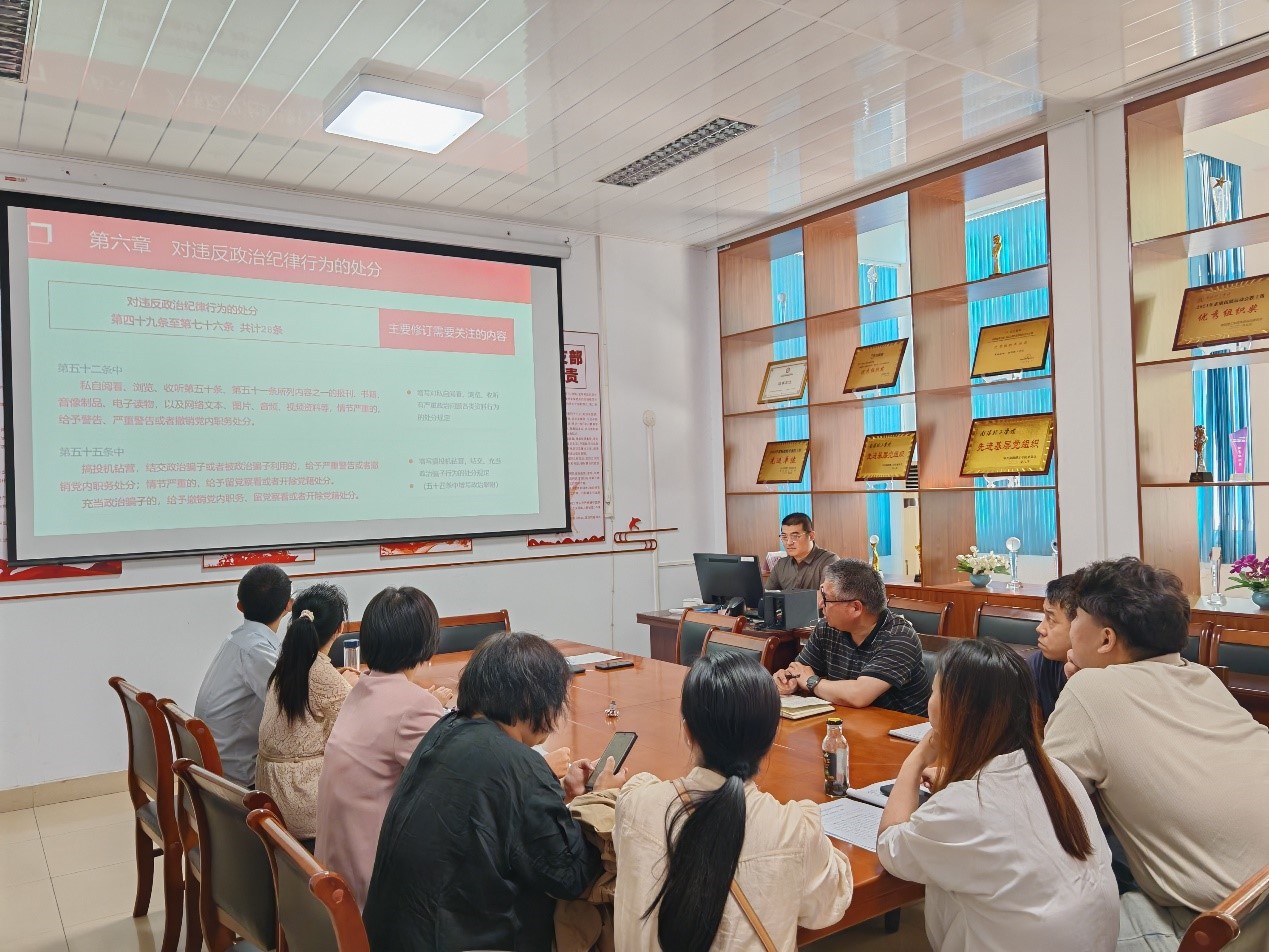会上,全体党员认真学习了《中国共产党纪律处分条例》第六章的内容,并开展深入讨论。随后,老师们围绕自身教学工作及身边相关警示案例,结合党纪学习教育目标要求,从自身建设、推动工作、营造风清气正良好政治生态等方面进行发言,进一步明确日常言行的衡量标尺,真正将纪律“装进脑袋里、落在行动上”,做到学懂弄通、知行合一。