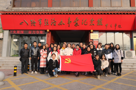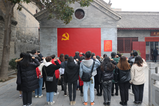 第二天的行程我院师生党员来到红色教育基地八路军驻洛办事处纪念馆,感悟抗日战争期间的革命史诗。1938年“洛办”成立,毛泽东同志亲自向负责此事的刘向三同志谈话并布置具体任务。我院师生在参观照片、文物等综合陈列和刘少奇住室等旧址复原陈列后于院内党旗下庄严的重温了入党誓词。