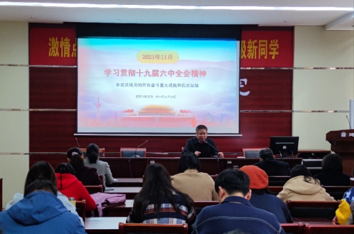 田光辉强调,广大师生党员要深入学习党的十九届六中全会精神,进一步学懂悟透做实,并将其作为深化巩固党史学习教育的重要内容,从党的奋斗历史中汲取发展智慧,汲取披荆斩棘、奋勇争先的磅礴力量,坚定理想信念,进一步推动学院工作的高质量发展。