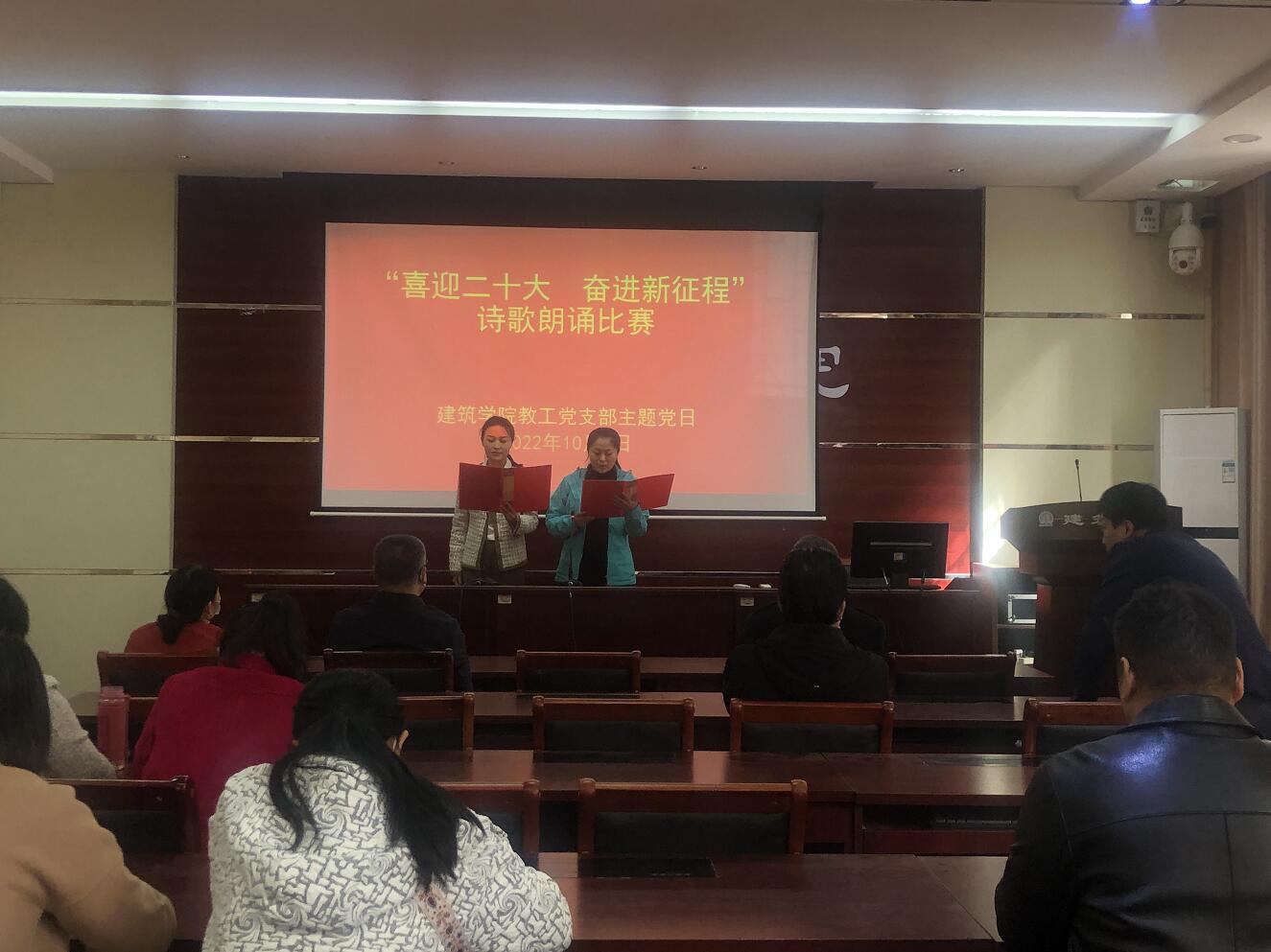 为重温党的百年历程,迎接党的二十大胜利召开,2022年10月9日下午,建筑学院党委和院工会共同举办“喜迎二十大 奋进新征程”主题党日活动,组织全体党员和教师进行诗歌朗诵比赛,并共同观看红色电影《开天辟地》。