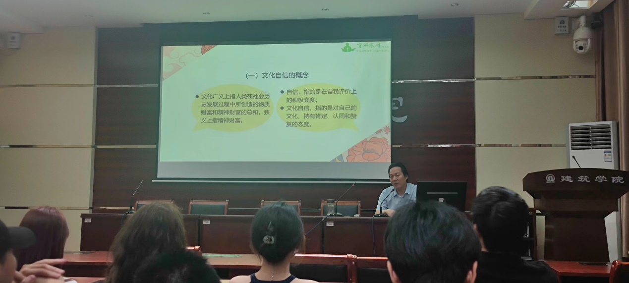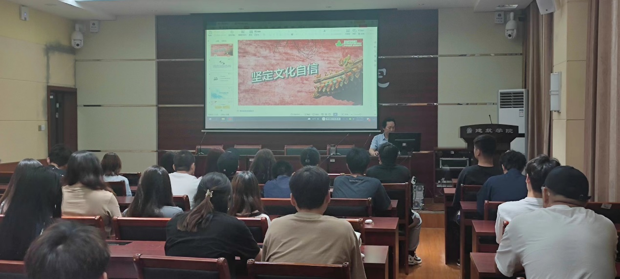 本网讯(学生记者/赵文欣)2023年6月3日晚,建筑学院第四学生党支部在7106多功能会议室开展了以“坚定文化自信 弘扬中华文化”为主题的党课,我院副院长周中玉担任主讲,全体党员和入党积极分子参加。