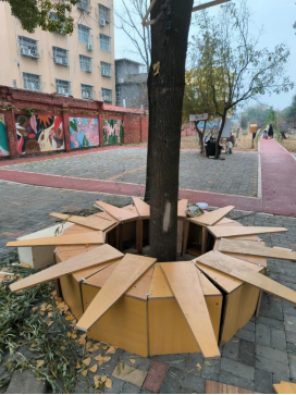 本次作业的设计地段为建筑学院7号楼前的桃李园,功能定位为“停留空间”。在为期5周的学程中,同学们4—6人组成一组,利用前四周时间完成旨在帮助人们停留休闲的空间方案设计,在最后一周利用学校的废旧材料将模型进行实体搭建,形成真正供人们使用的实体空间。