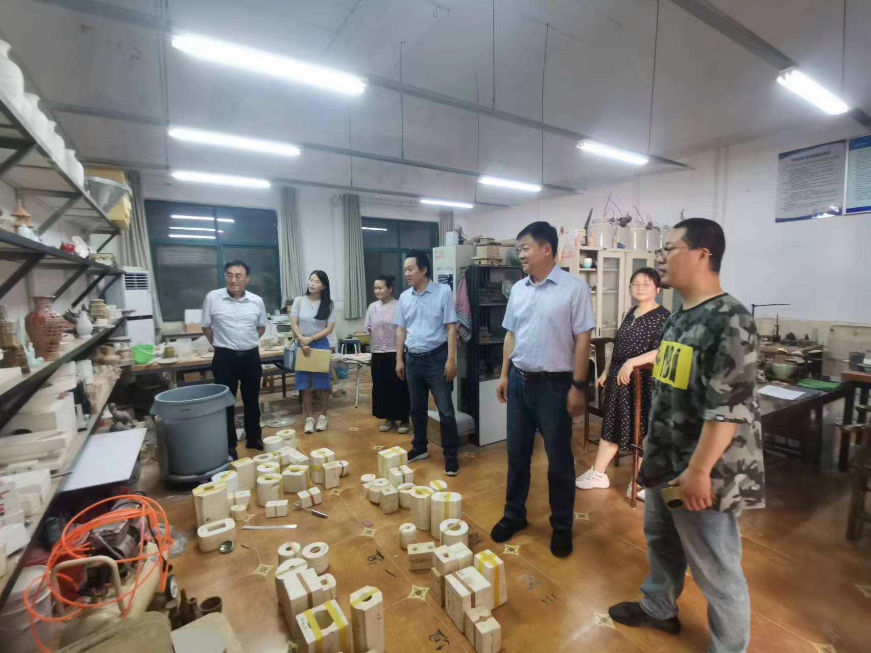 建筑学院负责人带领王玉琛主任一行先后参观了学院雕塑与陶艺实训室、建筑模型实训室、历史建筑保护工程实训室等区域。每到一处,考察团成员都认真听取讲解,深入了解建筑学院育人实效及实训模式,并对学生作品给予了充分肯定。