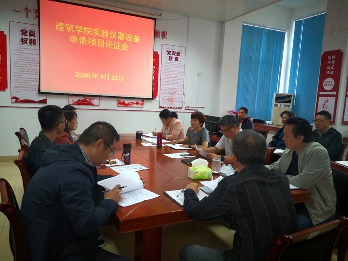 9月25日上午八点半,建筑学院对2021年教学科研仪器设备购置计划进行论证,会议由副院长周中玉主持,学院班子张建文、田光辉、谭征和张辉出席,各教研室负责人及相关教师参加论证。