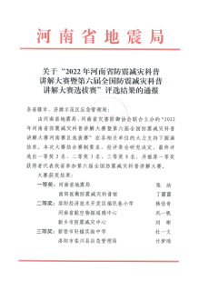 本网讯(特约记者/王飞)近日,由河南省地震局、河南省灾害防御协会共同举办的2022年河南省防震减灾科普讲解大赛暨第六届全国防震减灾科普讲解大赛圆满结束,建筑学院教师吴彬荣获三等奖。