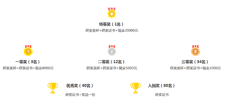 一等奖 3 名,获奖奖杯、证书及奖金各 8000 元。
