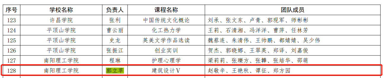 近日,河南省教育厅下发了《河南省教育厅关于公布河南省2022年本科高校课程思政项目建设名单的通知》(教高〔2022〕400号),我院郭立苹讲师主持申报的《建筑设计Ⅴ》被认定为省级课程思政样板课程。
