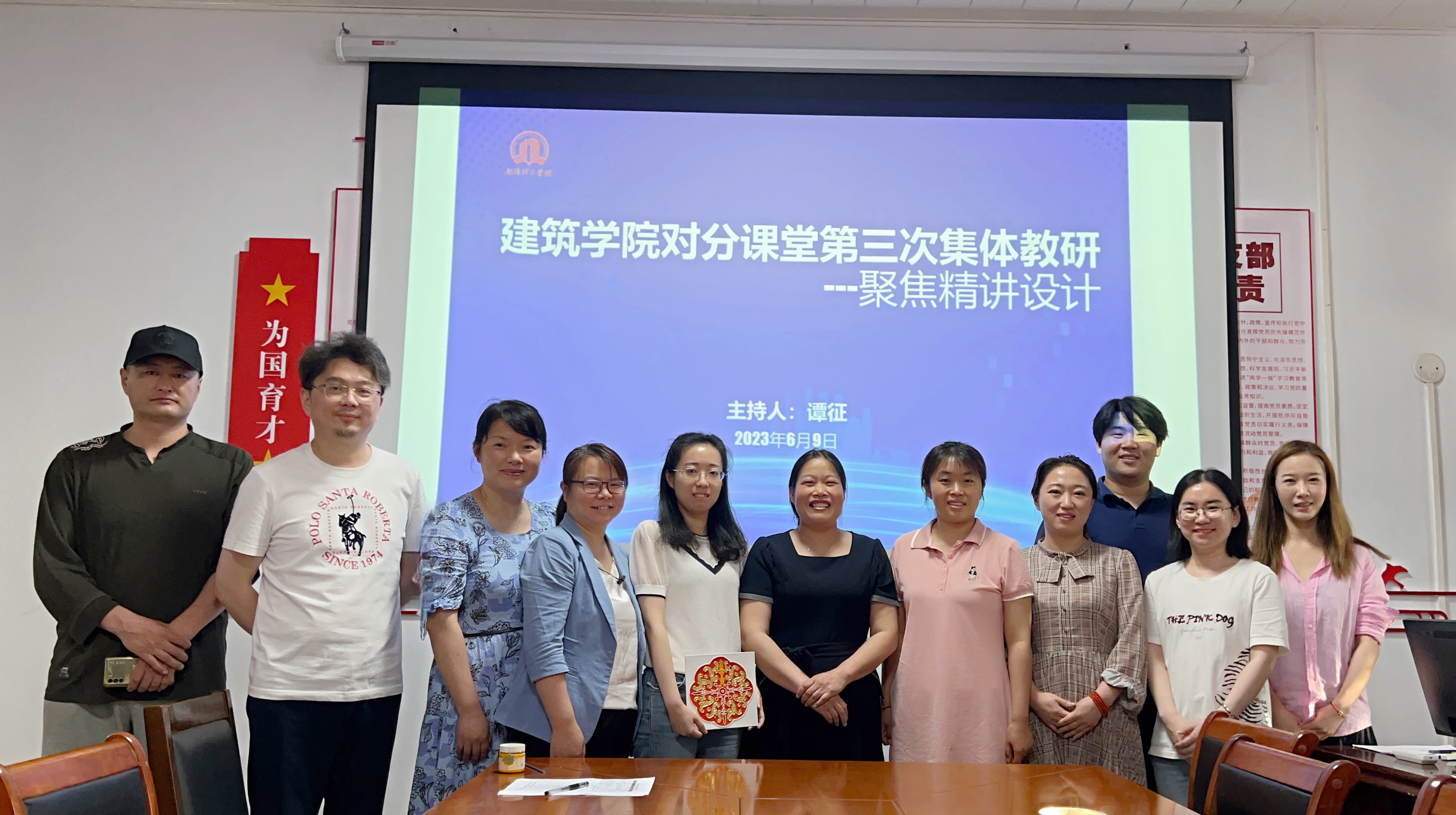 本网讯 (记者/余淑君)6月9日下午,建筑学院对分课堂第三次集体教研活动在7教辅楼101举行,建筑学院院长谭征带领学院第一批、第二批对分课堂教师发展师围绕“聚焦精讲设计”的主题,进行了分享与研讨。