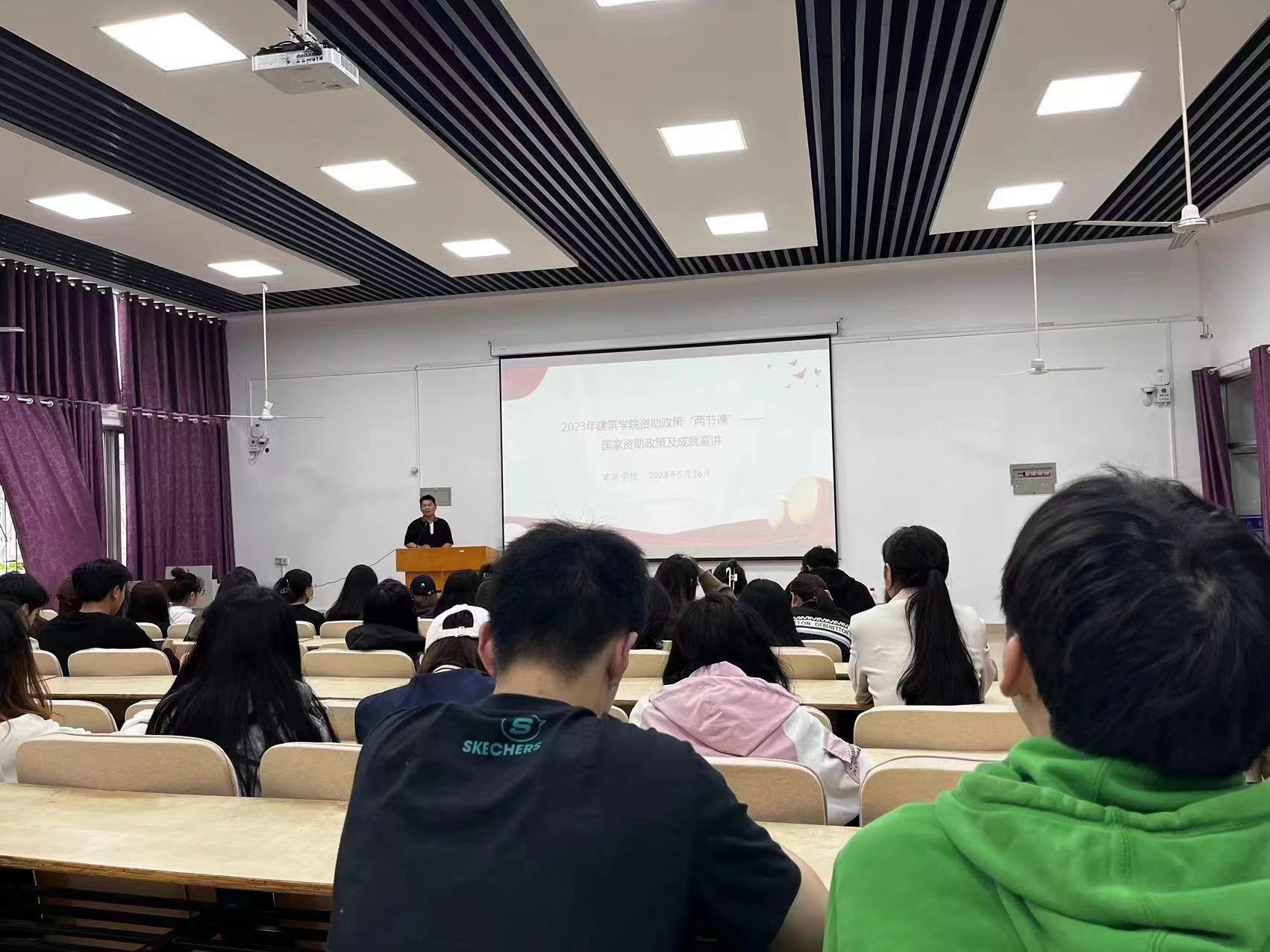 本网讯(学生记者/王晨)为进一步落实资助育人政策,提高毕业生对国家、学校相关资助政策的关注度,加强毕业生们的诚信观念和感恩意识。5月26日,我院于7101报告厅开展毕业生远航教育“六个一”工程——国家资助政策及成就宣讲活动,建筑学院资助专干李明东担任主讲人。