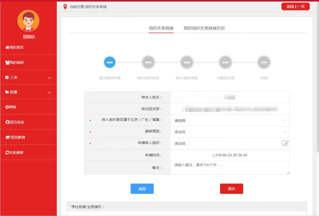 注意:所有团员在网上发起团关系,转入时需注明所录取专业。以上线上、线下两个步骤全部完成,标志团组织关系转接成功。