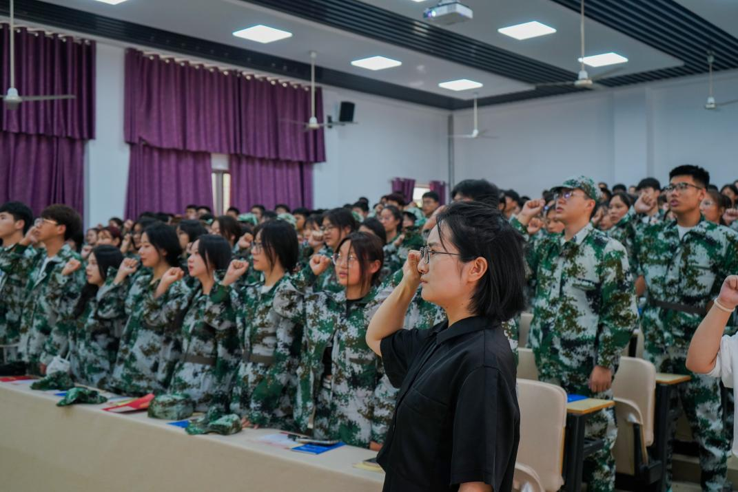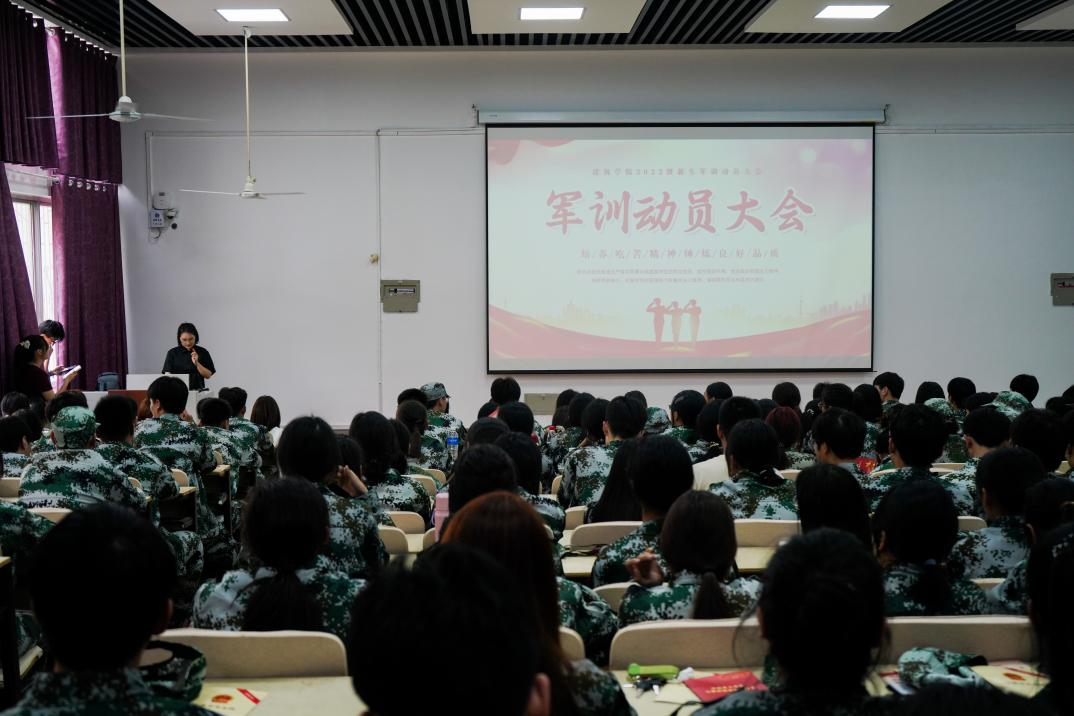 见面会后,建筑学院2023级新生军训动员大会在雄壮的国歌声中拉开序幕。田老师着重强调了军训要求、军训注意事项,并带领全体新生宣誓:一定服从命令,听从指挥,尊重教官,刻苦训练,恪守纪律,练就—身军人铮铮傲骨,传承军人爱国奉献、吃苦耐劳的精神,保证完成此次国防教育任务。嘹亮的宣誓声震耳欲聋,同学们个个摩拳擦掌,对即将开始的军训充满期待。