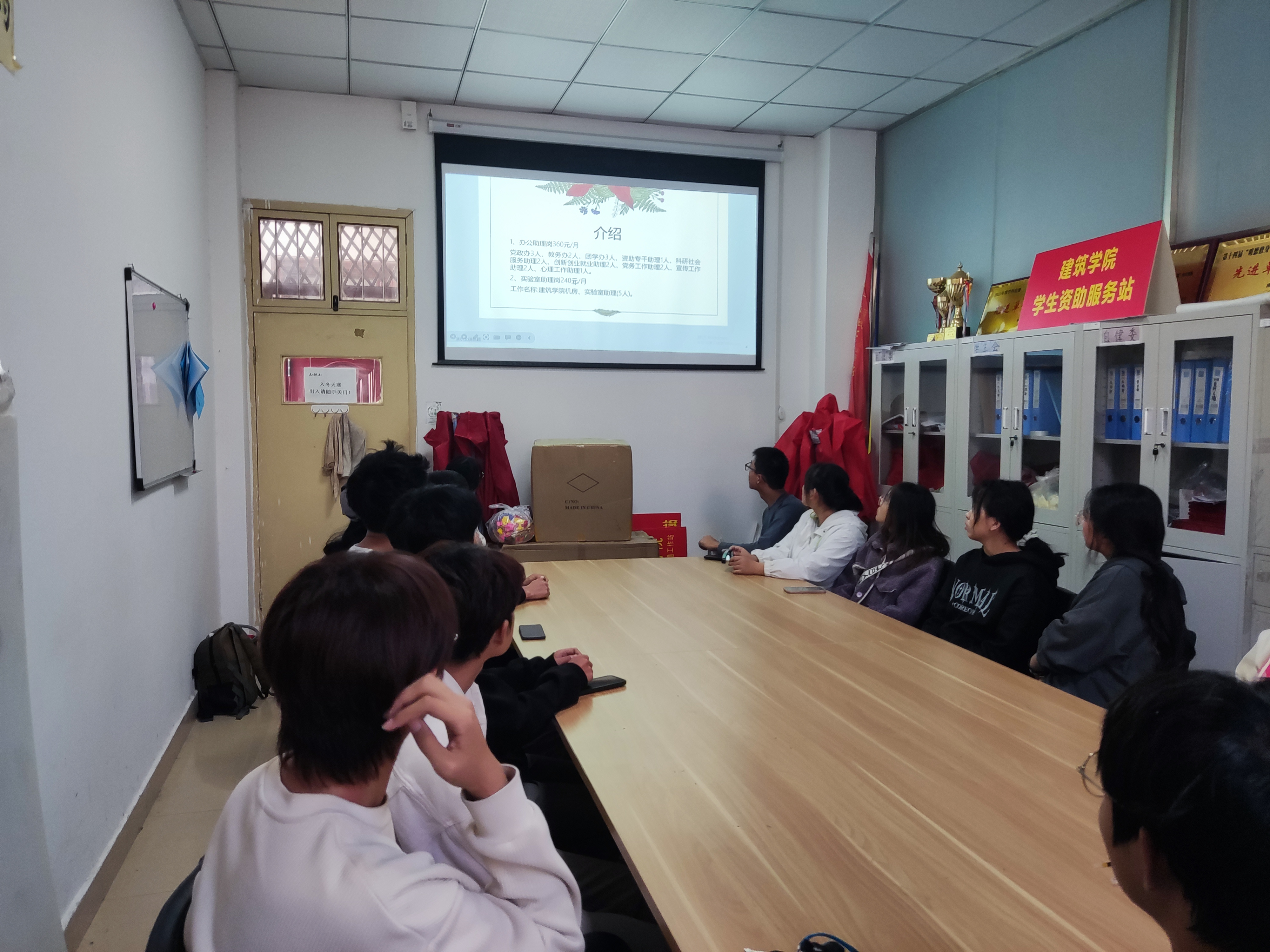 本网讯(学生记者/李萍)为了提升学生的责任意识,让同学们更加熟悉勤工助学岗位的内容,更好地开展勤工助学工作,10月21日,建筑学院于七教118举行“勤工助学岗位”培训会,会议由我院资助工作站勤工助学部部长赵文哲担任主讲。