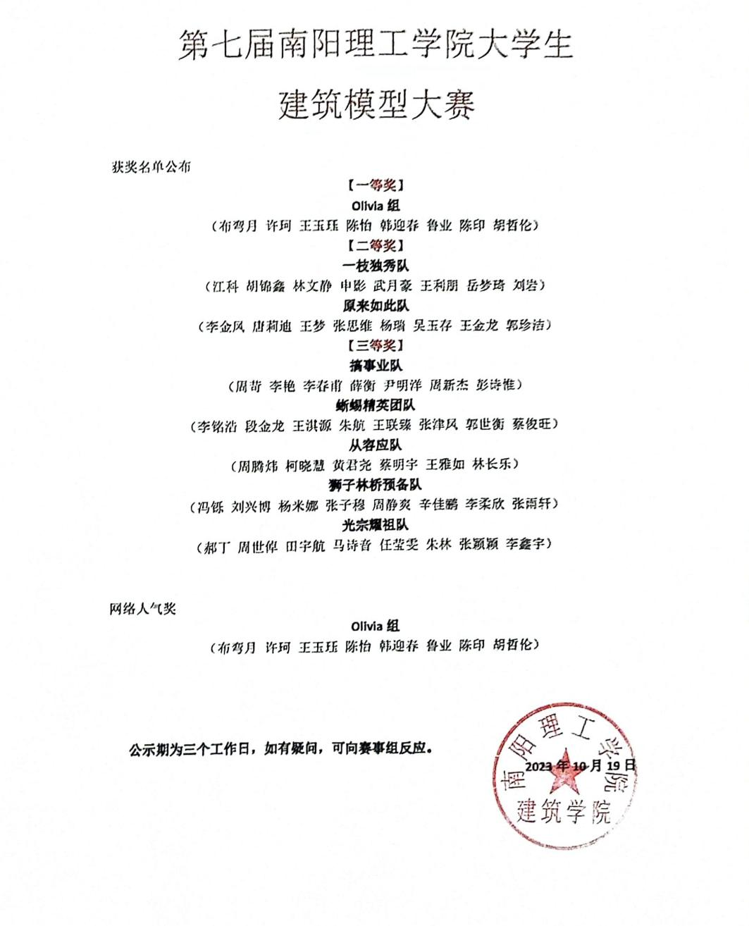 本网讯(学生记者/徐思)10月16日,南阳理工学院第七届大学生建筑模型大赛圆满落幕。本次比赛由我校党委学生工作部主办,建筑学院承办,面向全体在校大学生。比赛经过初选,十支队伍成功脱颖而出,进入决赛。