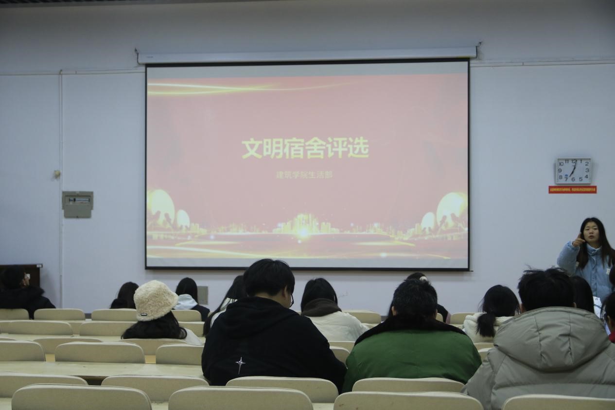 本网讯(学生记者/王经商)为展现我院学生的精神文明风貌和优秀宿舍风采,11月24日,建筑学院于7阶101举办了文明宿舍评选活动。
