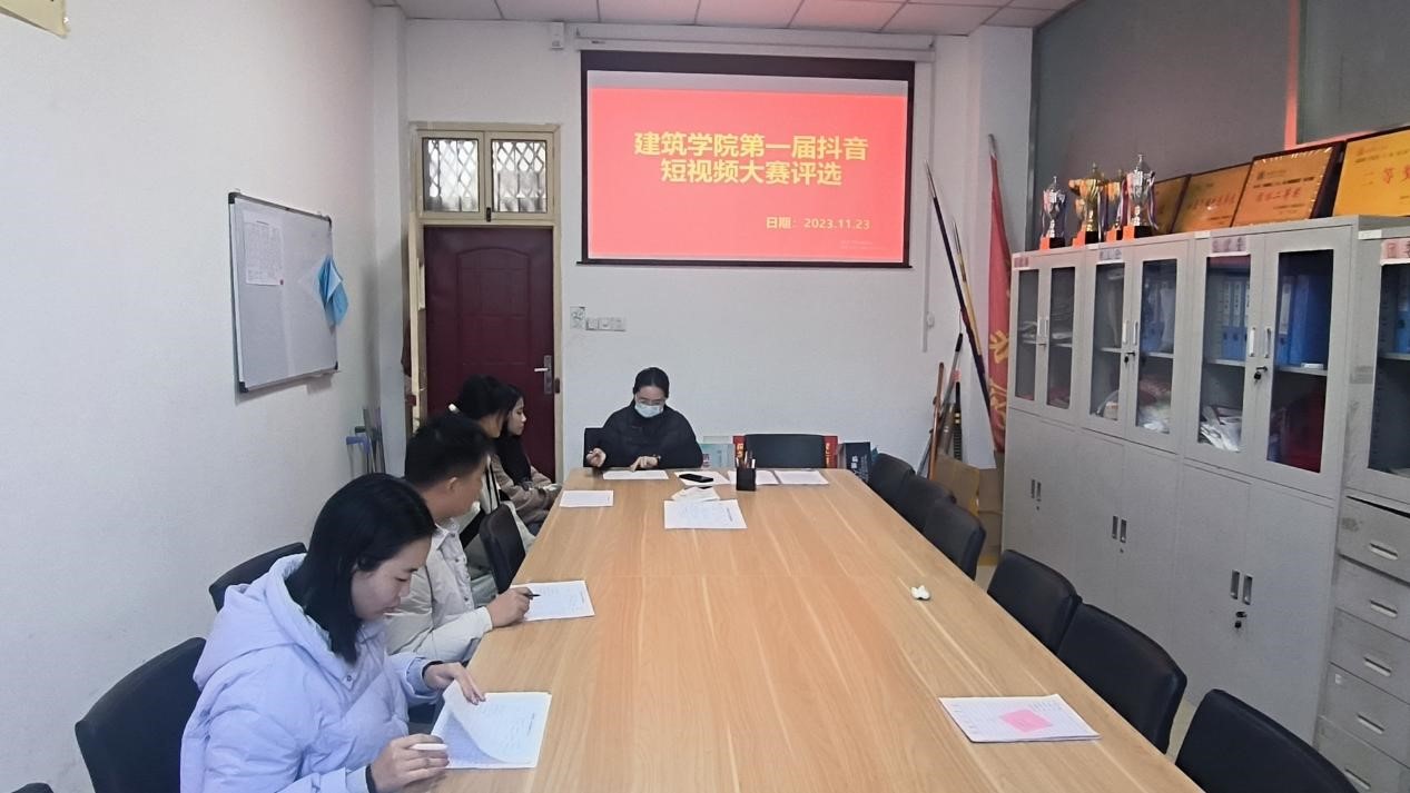 本网讯 (学生记者/李春甫)为展示我校学子积极向上、奋勇拼搏的良好精神风貌,我院组织学生通过真实、生动、富有创新性的短视频,塑造充满活力、可爱有趣、生活丰富的南阳理工学院大学生形象,11月23日,建筑学院抖音短视频初赛评审会在学生会办公室举行。