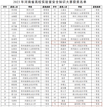 本网讯(特约记者/田真 刘素芳)近日,河南省高校实验室工作研究会公布了《关于表彰“河南省高校第三届实验室安全文化宣传月”实验室安全知识大赛获奖个人的通知》(豫高实〔2023〕12号),建筑学院学子周静爽、贾欣豪获得一等奖,牛子怡获得二等奖。