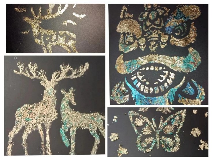文化节期间,文化遗产保护协会社团以传统文化为主题,潮流做法为载体,传统与潮流相结合,碰撞出一幅幅精美的烧箔画。在同学们的妙手里,在色彩的加持下,善良正义九色鹿、吉祥如意的财神、五彩斑斓的蝴蝶、威风凛凛的醒狮等精妙作品诞生在同学们的手中。