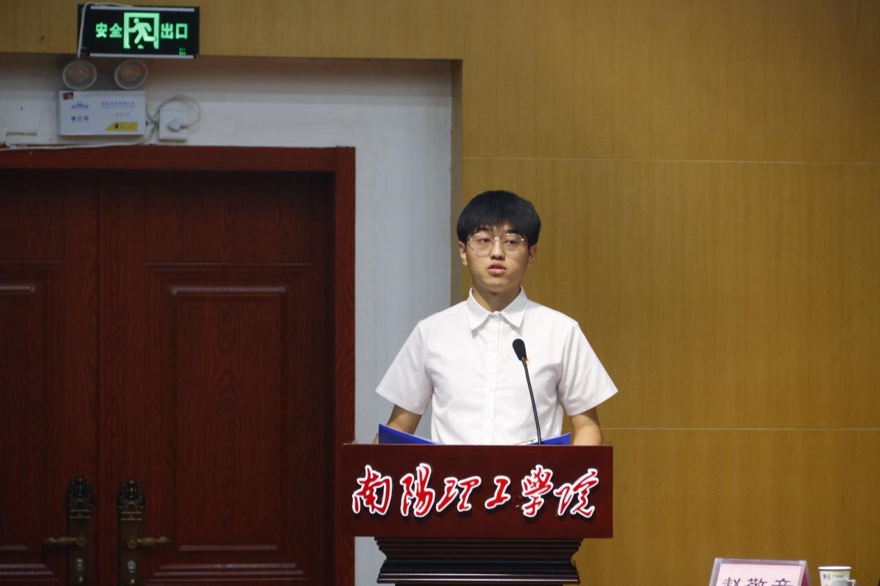 新生代表皮国峰在发言中说道:初入校园,心怀感念,学院老师、学长学姐的热情帮助暖人心扉,更加唤起了他对大学生活的美好憧憬,并表示会在以后的大学生活中勇往直前、团结协作,谱写美好新篇。