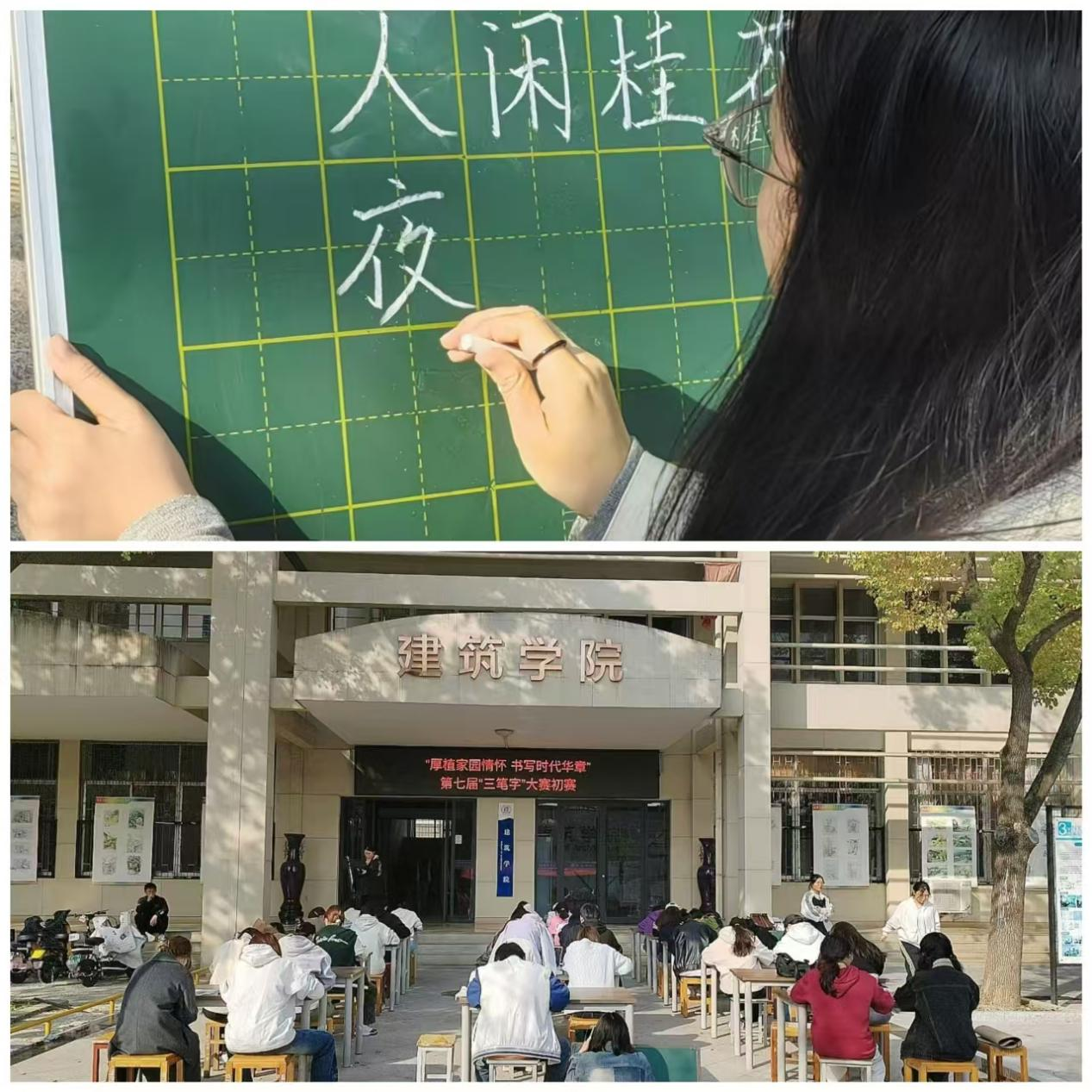 本网讯(学生记者/刘天宇)为传承和弘扬中华优秀传统文化,提升当代学生书法素养,10月29日,建筑学院于七号教学楼前广场开展第七届“厚植家国情怀,书写时代华章”三笔字大赛。