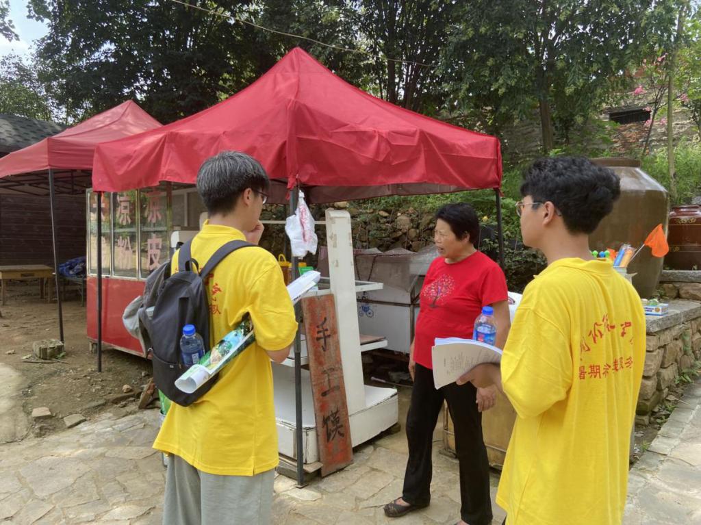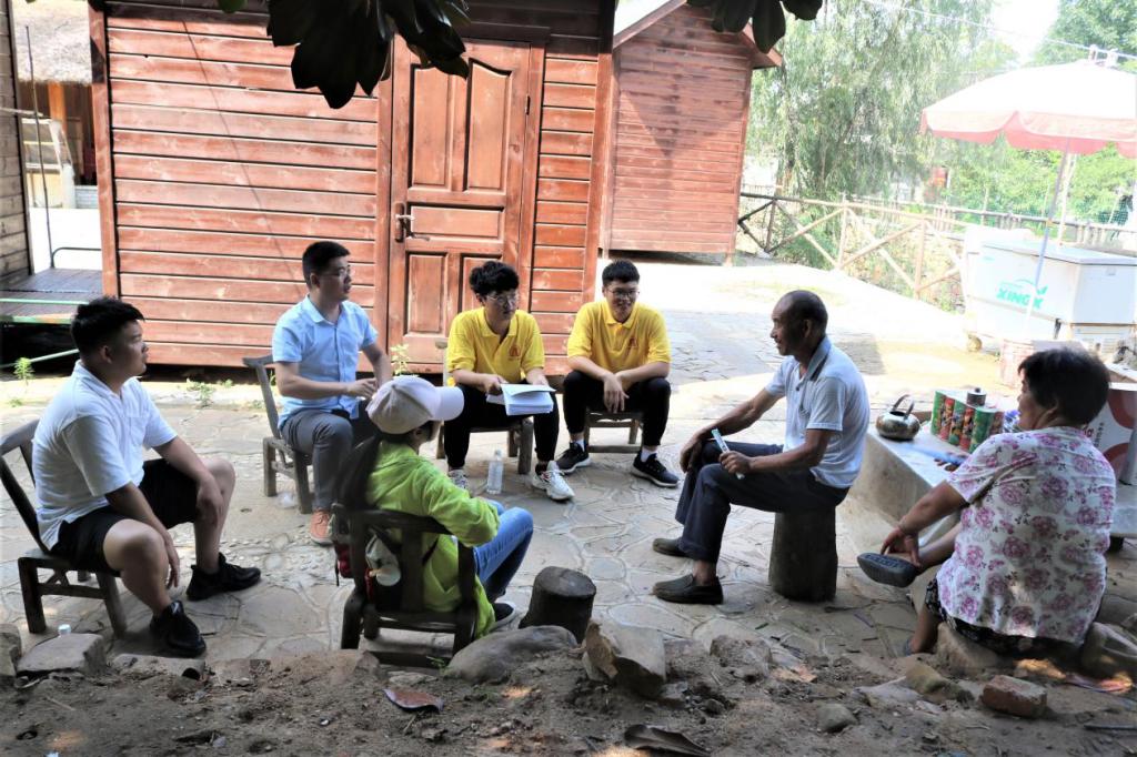 抵达目的地后,服务队以石头村为中心阵地,采取流动宣讲和填写调查问卷的形式,分组开展本次社会实践。队员们在调研过程中为村民分发“乡村振兴”宣传页并讲解政策内容,将宏观的发展理念与石头村本地的旅游开发相结合,理论联系实际,与村民聊家常、学理论、谈现状,体会农村的纯朴生活,感受家乡的美丽变化。