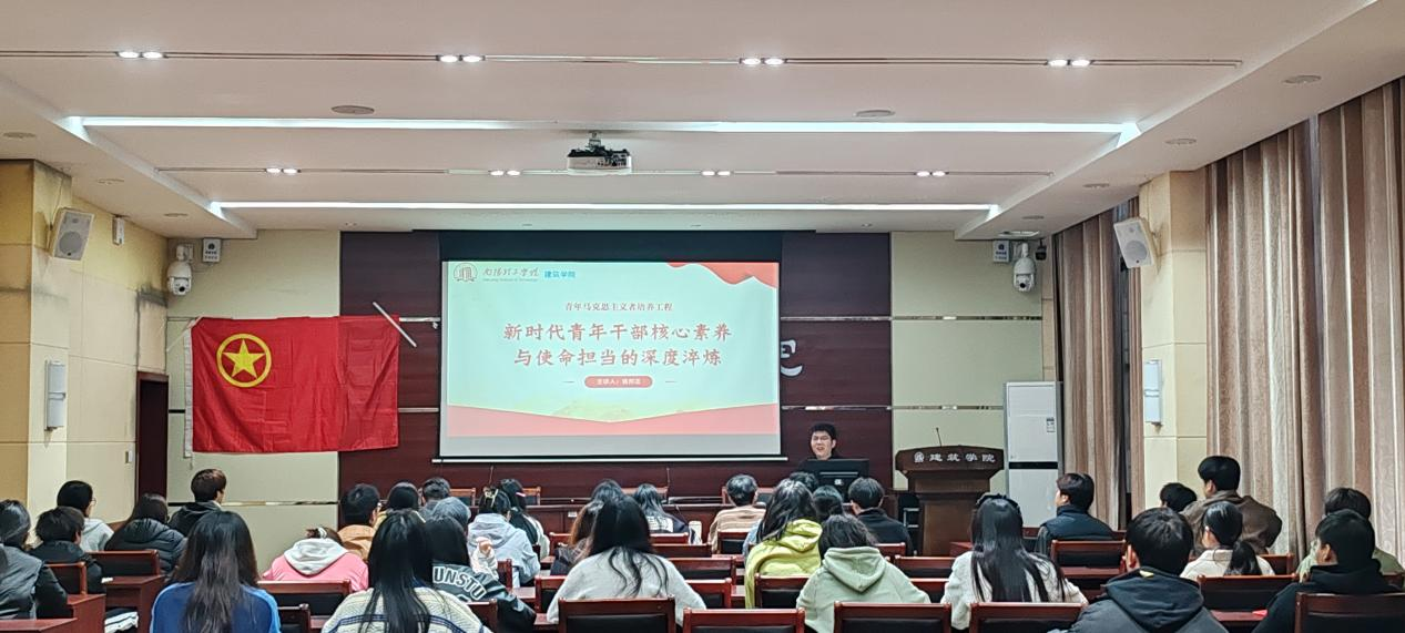 本网讯(学生记者/朱思念)为进一步提升建筑学院青年干部的核心素养和使命担当意识,11月12日,建筑学院开展以“新时代青年干部核心素养与使命担当的深度淬炼”为主题的第八期青马学堂第十四讲。校学生会主席、21级环境设计专业袁邦正同学担任主讲。