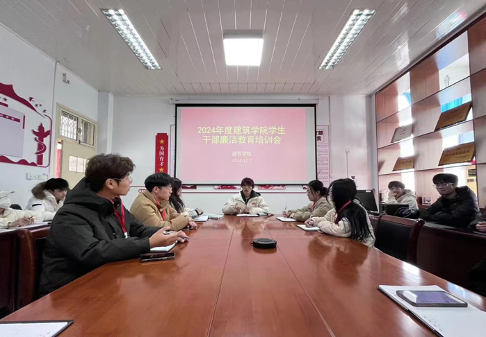 本网讯(学生记者/杨涛嘉)为加强学生干部的廉洁意识,提升道德素养和责任担当,11月7日,建筑学院在7号附楼101办公室开展“学生干部廉洁教育”培训会。我院第五届学生组织骨干成员参加。