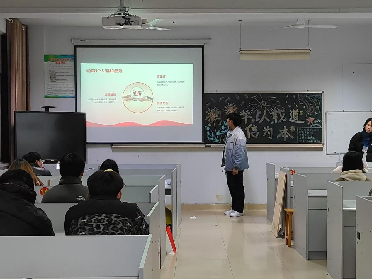本网讯(学生记者/程国利)为进一步强化诚信教育氛围,培育学生的诚信品格与道德素养,持续深入推进优良学风校风建设,12月8日,建筑学院组织各年级学生开展“学以载道,诚信为本”主题班会活动。