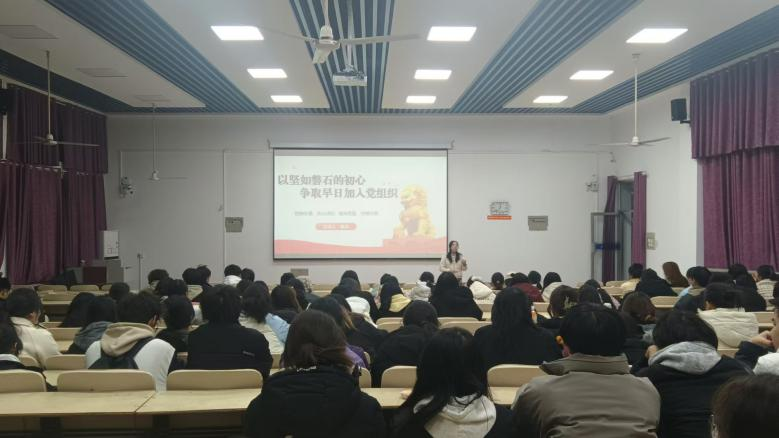 本网讯(学生记者/马通)为进一步加强学生的培养教育,提升其思想政治觉悟,保持党员队伍生机活力,11月29日,建筑学院在7阶101报告厅举办“初心如磐映党旗,流程规范铸忠诚”专题讲座,学院党委组织员杨菲老师担任主讲,2024级学生代表到场聆听。