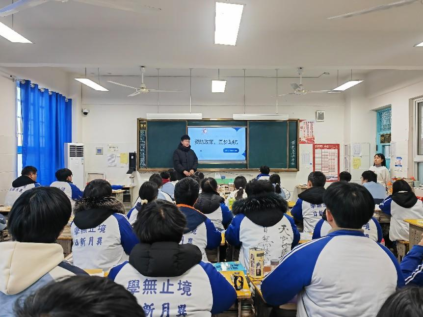 在2025年寒假期间,南阳理工学院建筑学院的张建仰同学积极响应学院号召,担任了“学生资助宣传大使”,返回他的高中母校——延津县无线电技术学校,开展了一场别开生面的资助政策宣传活动。