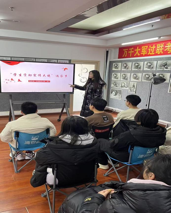建筑学院2022级环境设计专业3班学生、学生会副主席杨洋同学,作为“学生资助宣传大使”,回到家乡,积极开展国家资助政策宣讲活动。她结合自身受资助与成长经历,以生动的语言向高中画室的学弟学妹们讲述了国家资助政策对家庭经济困难学生的重要意义,用自己的亲身经历为他们点亮了前行的灯塔。