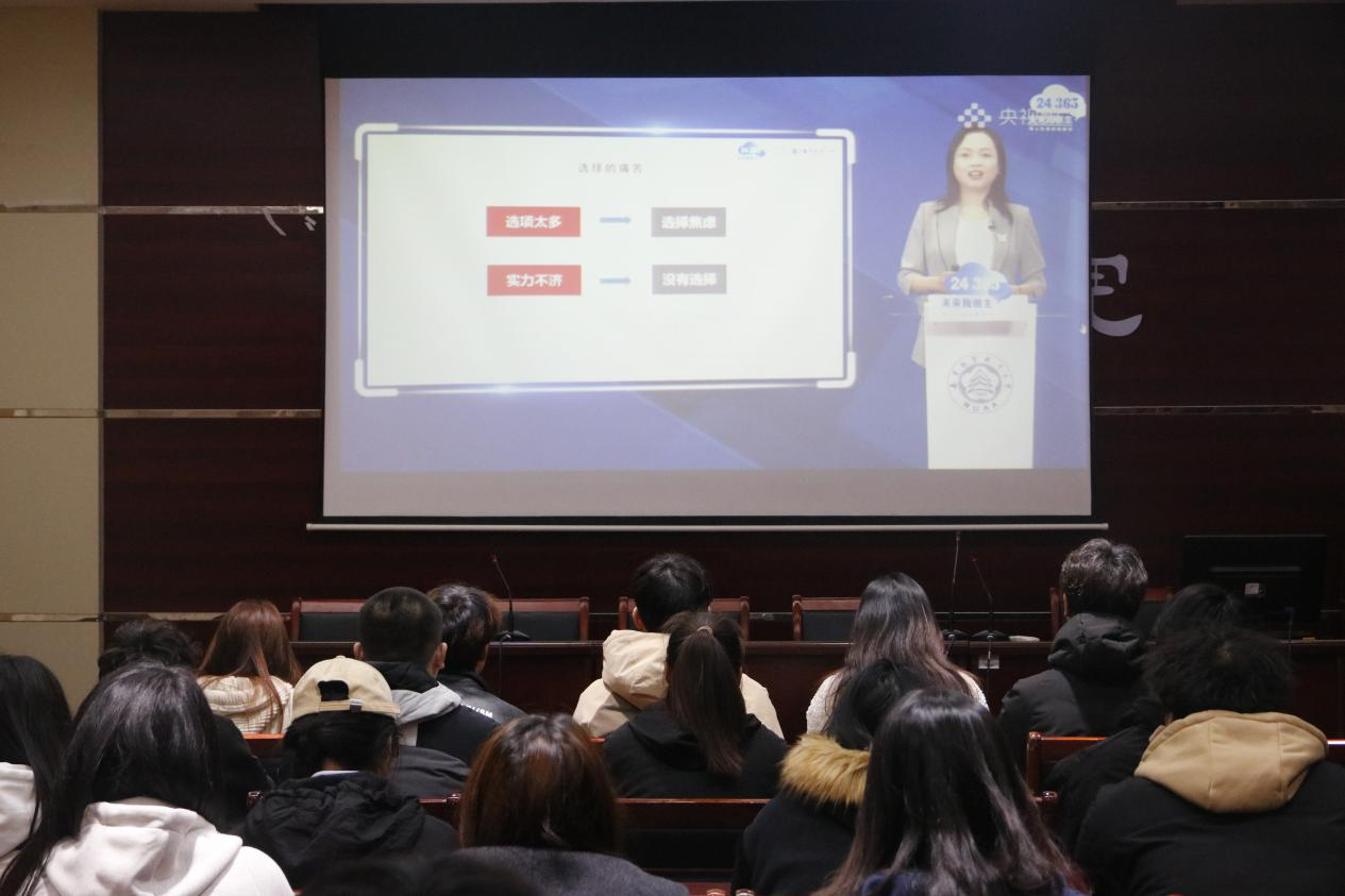 本网讯(学生记者/姜昱含)为帮助广大青年学生更好规划职业生涯,近日,教育部特别推出了“互联网+就业指导”公益直播课系列,旨在通过线上平台,为青年学生提供权威、实用的就业指导服务。3月16日,该系列直播课举办了一场主题为“新时代下,我们如何做职业选择”的精彩分享,特邀南京航空航天大学生涯发展教育研究中心主任沈雪萍教授担任主讲嘉宾,我院组织学生集中观看、学习。
