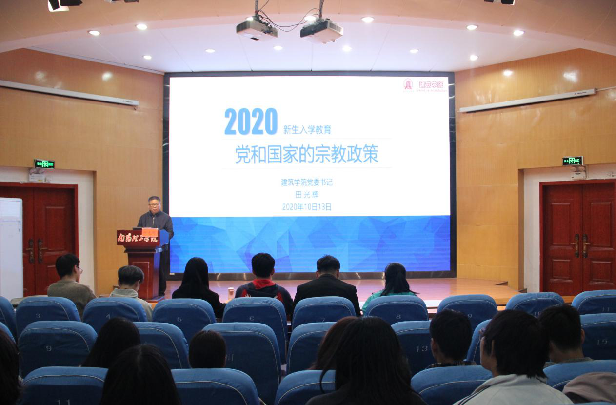 (通讯员 陶明慧)10月13日晚,建筑学院组织20级新生在领创空间报告厅召开新生起航教育工程系列之六——“党和国家的宗教政策”专题讲座。讲座由我院党委书记田光辉主持,部分教师和全体新生到场聆听。