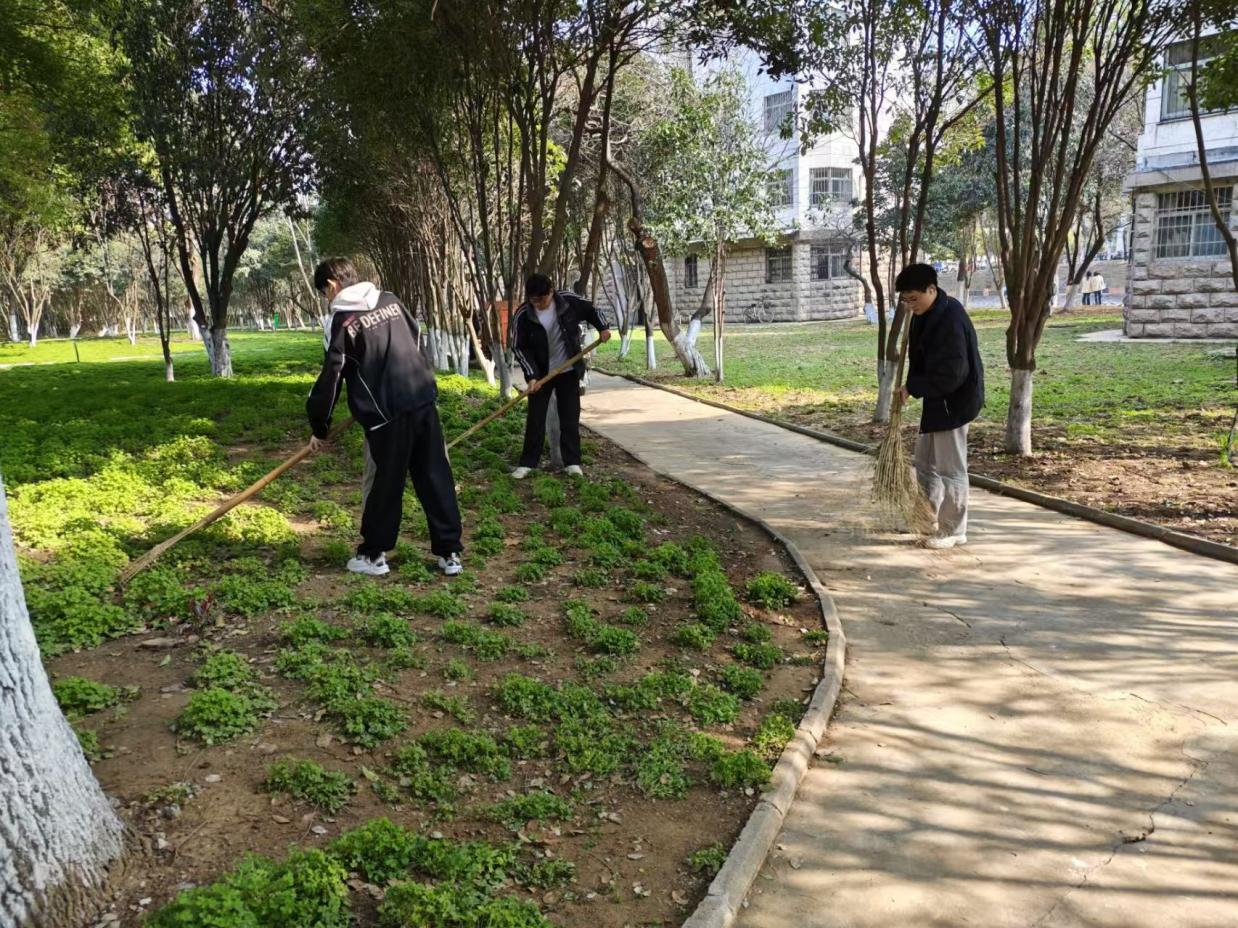 在专家公寓门前,同学们拿起扫帚、簸箕等工具,认真清扫地面的落叶、灰尘和杂物。大家不放过任何一个卫生死角,齐心协力,让专家公寓门前的环境变得干净整洁,为师生提供了更加宜人的校园环境。