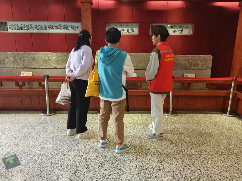 活动前期,我院志愿者们全身心投入准备工作。他们查阅大量历史资料,深入研究每一幅汉画的艺术特色、历史来源及背后故事,为讲解做足功课。活动当日,志愿者们热情地带领参观者穿梭于展厅。面对馆内琳琅满目的汉代画像石,志愿者详细介绍汉画历史来源,从汉代社会生活、神话传说,到历史故事,参观者们直观感受到汉代的农耕、乐舞、车马出行等场景,深入了解了汉画承载的文化内涵与古人智慧。