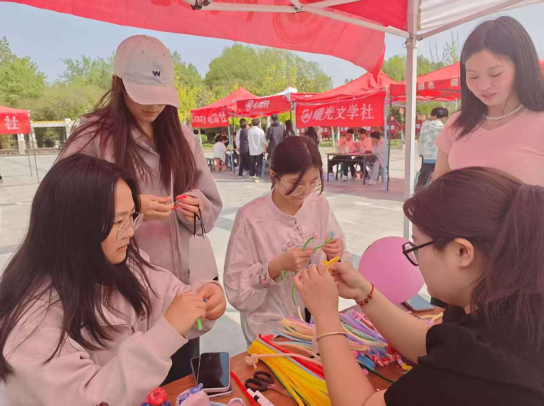 活动现场,精心布置的绿植区域宛如一片生机勃勃的绿色海洋,同学们在绿植前驻足,眼眸中闪烁着对自然的向往与热爱,认真挑选着心仪的“绿色伙伴”。与此同时,扭扭棒创意制作区也热闹非凡。同学们化身为春日艺术家,用五彩扭扭棒勾勒出花朵的婀娜姿态,将对春天树林、花朵的细腻审美倾注于指尖创作,大胆展现对美的独特理解。当手中的扭扭棒变成娇艳花朵,仿佛同学们也成为了春天的一部分,与自然和谐共融。