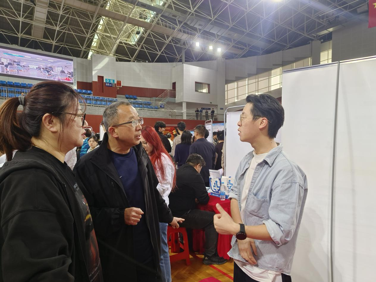 本网讯(学生记者/姜昱含)4月12日,我校迎来一年一度的春季校园双选会。本次双选会吸引了众多知名企业参与,为在校学生提供了丰富的就业机会。建筑学院党委副书记张辉、创新创业就业中心主任牛烨深入活动现场,面对面了解学生的就业情况,掌握学生在双选会的求职进展,并搜集相关反馈信息。