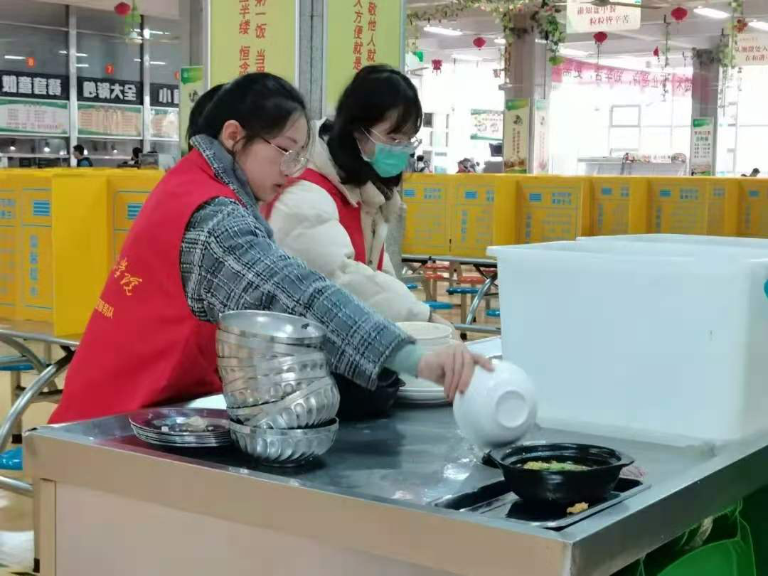 活动期间,为营造文明就餐、杜绝浪费的用餐氛围,志愿者们穿上红马甲,部分同学在食堂门口值班,为同学们及时提供帮助,部分志愿者在食堂里巡逻,提醒就餐完毕的同学及时回收餐具。其余志愿者在则食堂显眼处站岗,手持“拒绝浪费,人人有责”的告示板,提醒同学们尊重劳动成果,珍惜幸福生活。