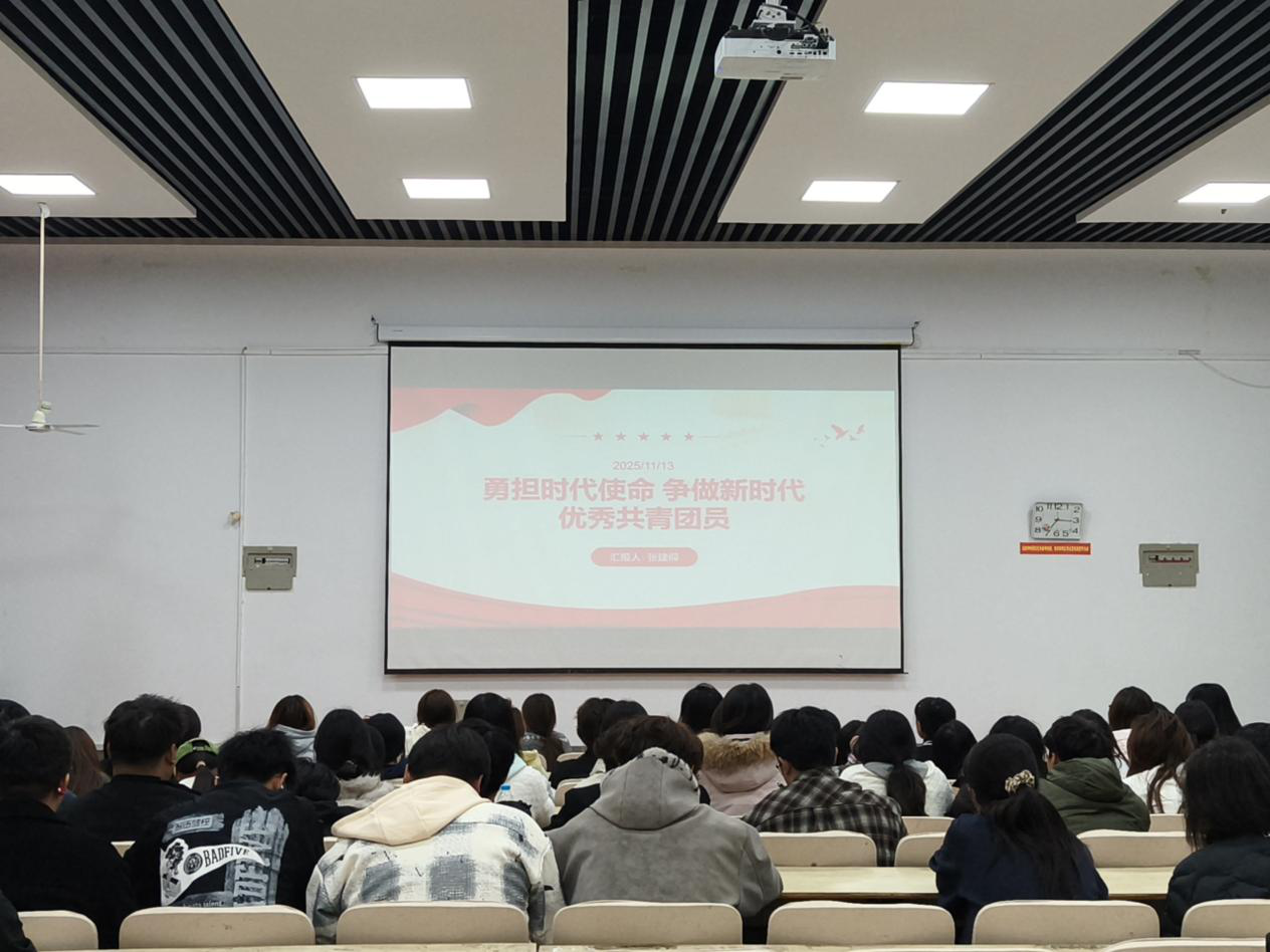 团课伊始,主讲人张建仰围绕“保持和增强团员先进性”展开讲解,详细解读了团员先进性评价体系的核心维度与分层分类激励机制,强调团员需在思想、学习、实践中践行六项基本义务。随后,他以“推优入党”为重点,从推荐对象、具体条件、工作程序三方面进行系统阐释,结合入党申请书撰写的结构规范与内容要求,为同学们提供了清晰的行动指引。在成长目标分享环节,团课通过优秀团员案例、“青马工程”培养路径、志愿服务与乡村振兴先锋事迹等内容,激励同学们在专业技能提升与社会实践中锤炼本领。现场同学们认真记录、积极互动,在交流讨论中深化了对团员责任与时代使命的认知。