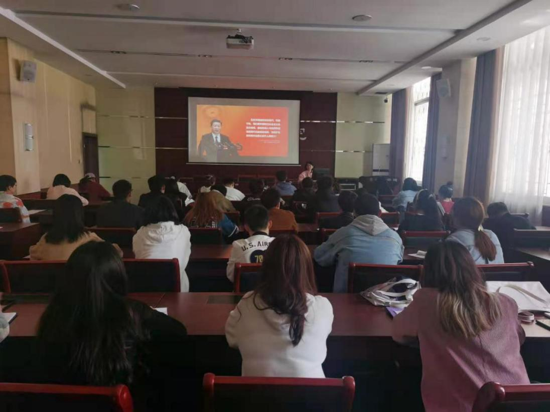 首先,李欣老师从“为什么坚持人与自然和谐共生”“怎样理解绿水青山就是金山银山”“如何推动形成绿色发展方式和生活方式”“有哪些中国特色社会主义生态文明制度体系和内容”四个方面带领同学们进入今天的党课学习。随后,李欣老师播放了有关塞罕坝干旱治理的相关视频,用讲解和视频结合的形式让大家深入的了解人与自然的关系,树立和践行“绿水青山,就是金山银山”的理念,推动形成绿色发展的生活方式。