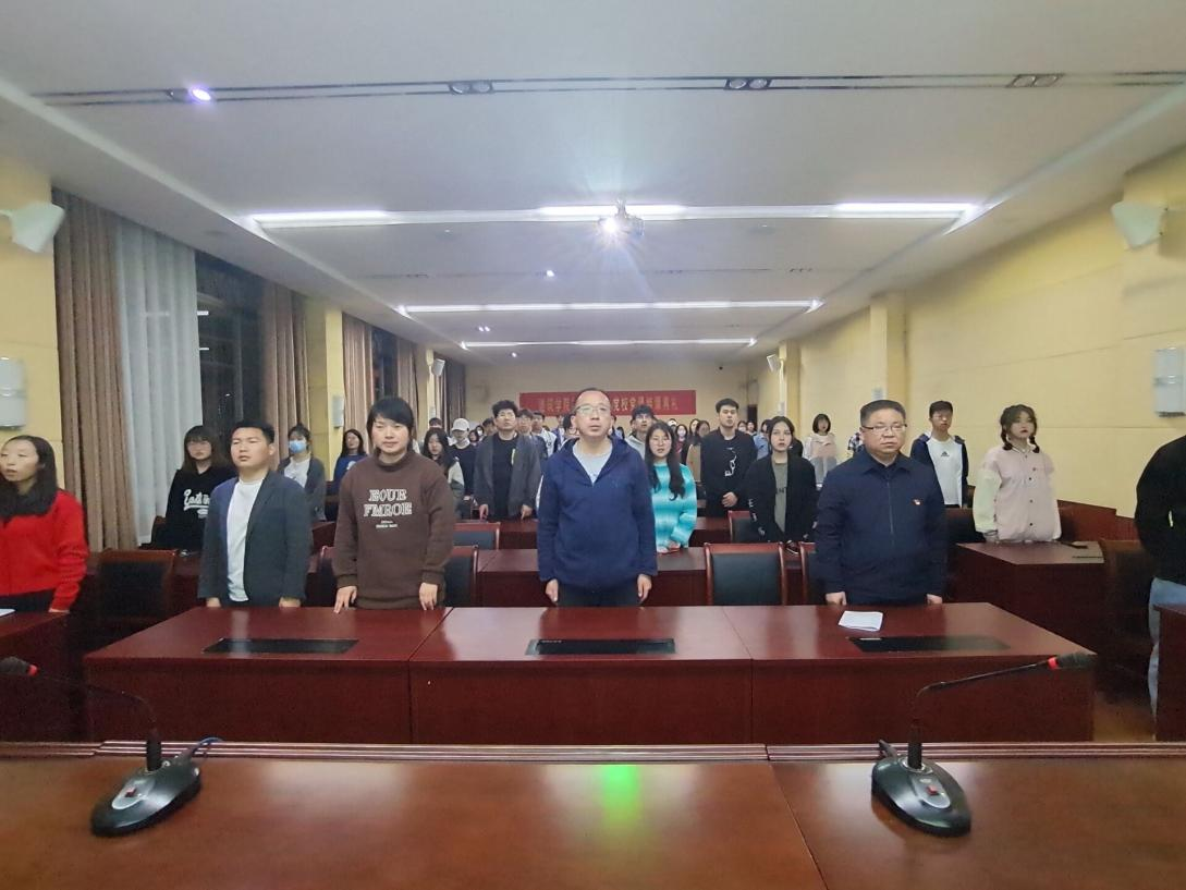 典礼开始,全体起立,奏国歌。首先,田光辉书记为本期党课毕业学员颁发结课证书向并向他们表示衷心的祝贺。随后,本期优秀学员上台分享本次党课的学习感想。最后,田光辉书记做结课总结,对同学们今后的学习与工作方向提出了几点要求:一是继续加强理论学习,将理论学习“常抓在手,常记在心”,坚定理想信念,牢记初心使命;二练就过硬本领,不断提升专业素养;三是严格要求自己,以高标准向党组织靠拢,以实际行动争取早日入党。典礼最后,全体起立奏国际歌。