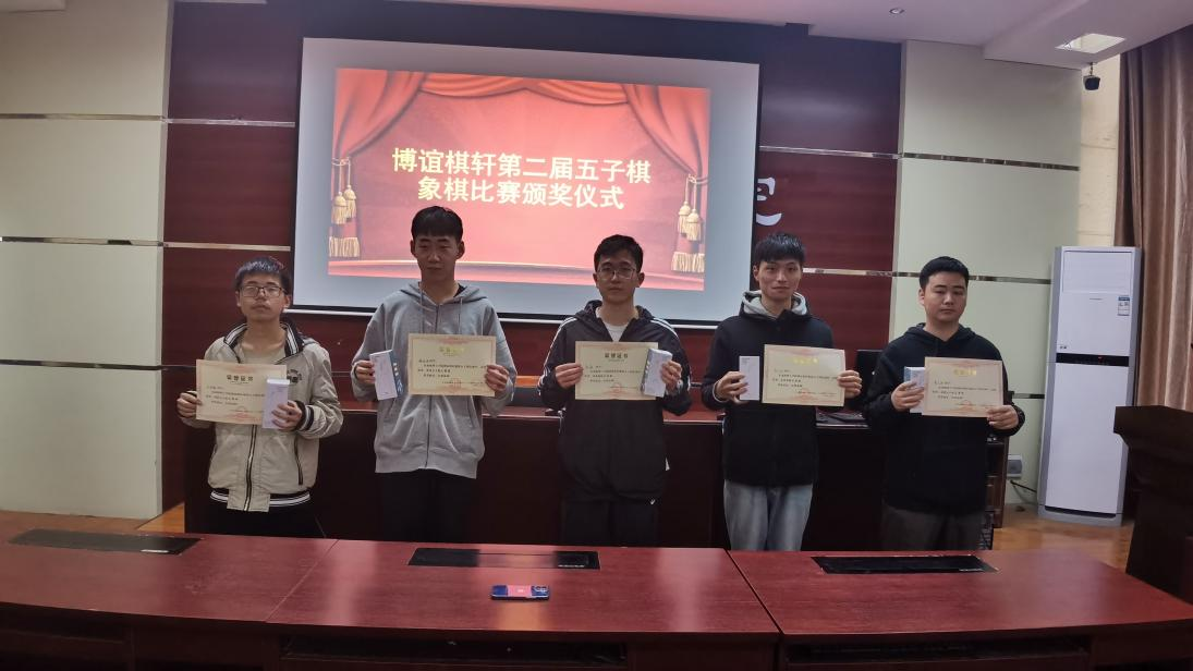 在颁奖仪式中,张辉书记首先对获奖的选手表示衷心的祝贺。同时也希望他们能在以后的活动中再接再厉,以更加昂扬的斗志迎接未来的挑战。随后,张辉书记与李欣老师为获奖选手颁奖。象棋类一等奖由赵龙真同学获得,二等奖由袁伟、芦程铖同学获得,三等奖由齐云龙、赵磊同学获得。五子棋类一等奖罗明川同学获得,二等奖由马圣亚、肖洒同学获得,三等奖由潘延顺、唐云祥、王科迪同学获得。
