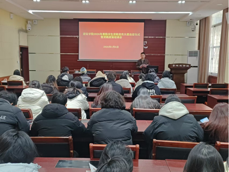 本网讯(学生记者/黄鑫)为进一步加大对国家资助政策的宣传力度,将党和国家的关爱精准传递给家庭经济困难学生,1月6日,建筑学院于7教106会议室举办了2025年寒假学生资助宣传大使出征仪式暨资助政策培训会议。学院资助专干李明东老师担任主讲。