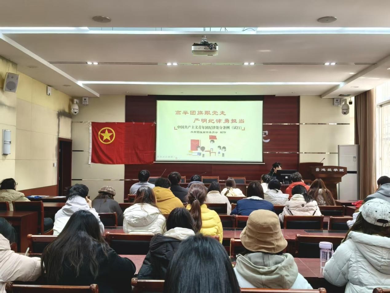 中午12时10分,活动准时开始。主讲人强调学习《中国共产主义青年团纪律处分条例》对青年团员成长的重要性,指出严明纪律是团组织保持先进性和纯洁性的保障,希望学员通过学习理解条例精神,认真规范言行。随后,主讲人围绕《条例》的制定背景、主要内容、修订亮点及贯彻落实进行系统讲解,解读了纪律处分种类、适用情形和执行程序,强调对违反政治纪律、组织纪律、廉洁纪律等行为的处分规定,使学员对条例有清晰认识。互动环节中,学员就纪律问题提问交流,主讲人现场解答疑惑并鼓励大家将条例要求内化于心、外化于行,争做合格共青团员。