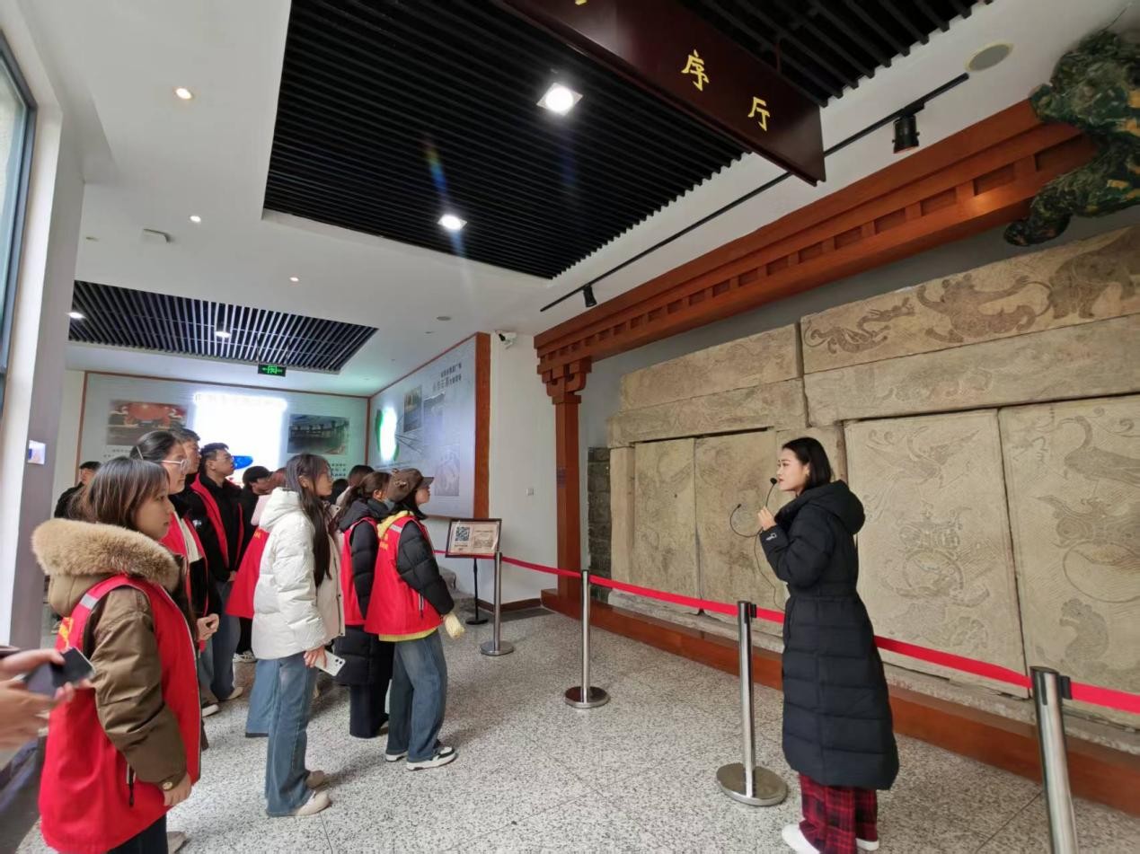 本网讯(学生记者/梁天昊)为进一步提升志愿服务水平,传承中华优秀传统文化,3月15日,建筑学院“筑梦青鸽”讲解队组织队员前往南阳汉画馆,开展了一场别开生面的志愿者培训活动。本次活动旨在通过实地参观与专业讲解学习,增强队员对汉代石刻艺术的理解,提升讲解服务能力。