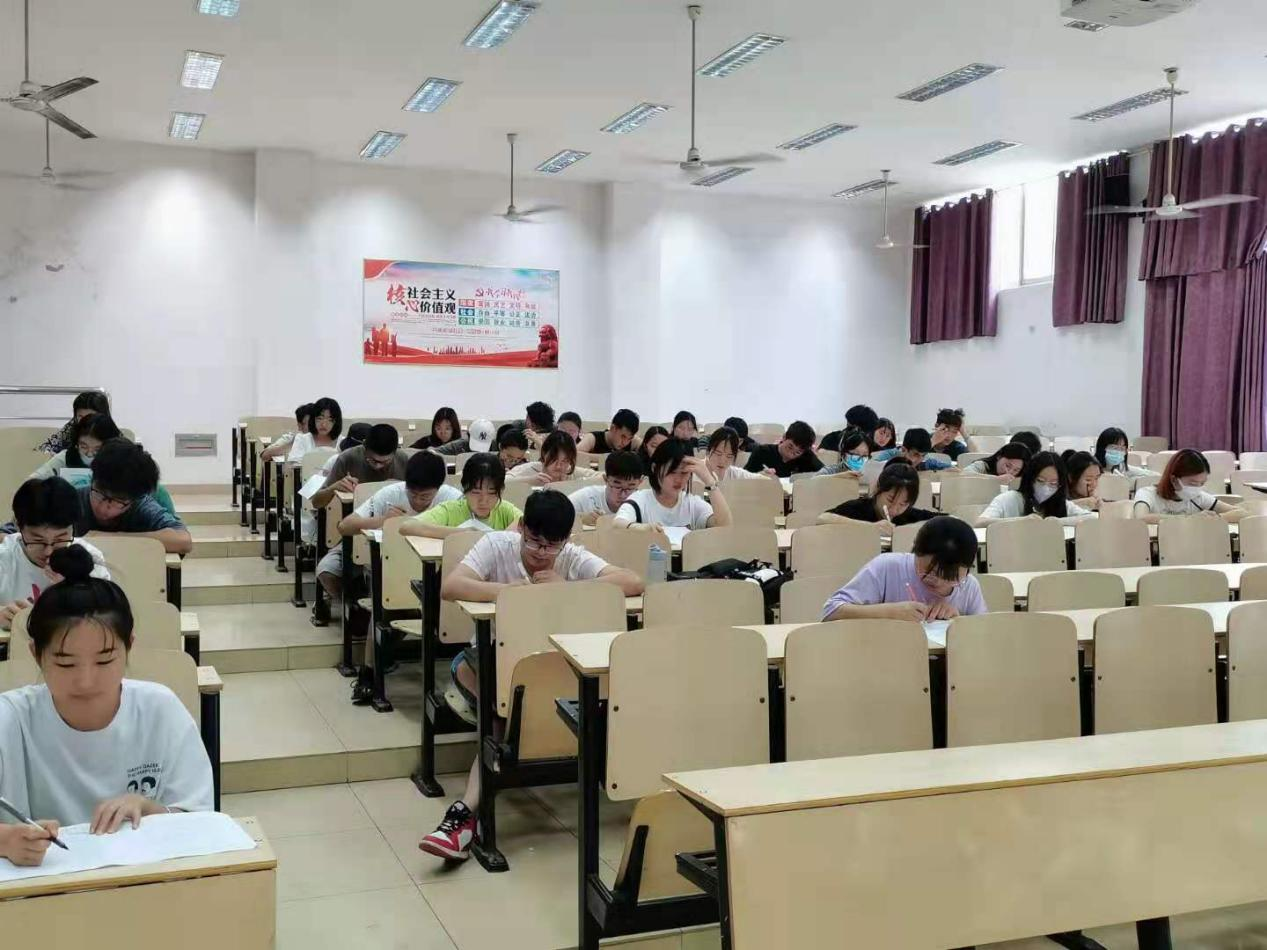 本次考试内容涵盖习近平新时代中国特色社会主义思想、社会主义核心价值观、五四精神、爱国主义精神等。考生全神贯注,认真作答,考场秩序良好。