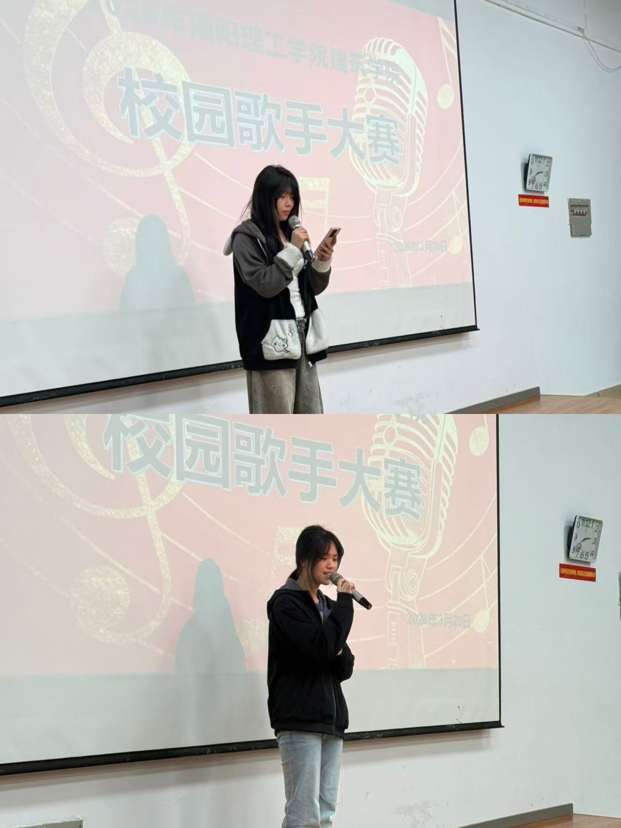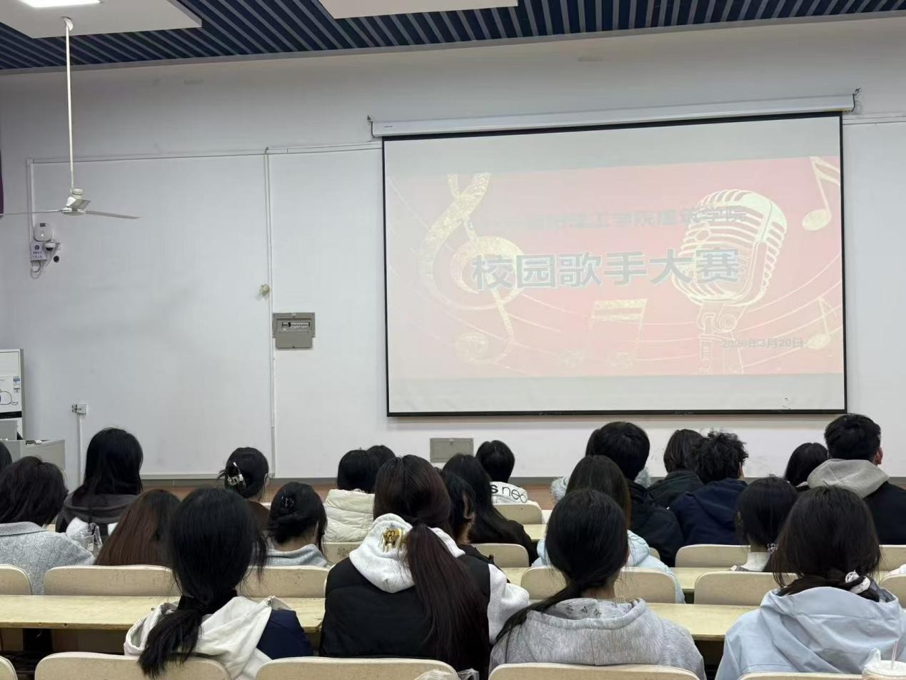 本网讯(学生记者/梁天昊)3月20日,由建筑学院团学办主办、文艺部承办的“2026年校园歌手大赛”建筑学院初赛在7教101阶梯教室顺利举办。本次活动以“引领青年学生树立正确的审美观念,弘扬社会主义核心价值观”为宗旨,吸引了众多学子到场观赛。