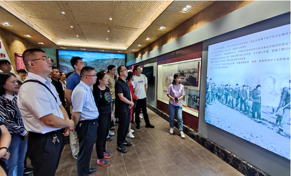 各位党员在南水北调中线移民精神宣讲员的带领下,来到南水北调中线渠首,参观南水北调引丹指挥部旧址。党员同志认真聆听解说,驻足细看与南水北调工程有关的照片、文献和书籍等资料,回顾“南水北调工程”的建设场景,体会南水北调引丹会战誓师大会上中国共产党“敢教日月换新天”的战斗精神,真切的感受当地人民在移民过程中做出的巨大贡献和牺牲,体会中国共产党人为解决水资源不均衡问题的艰苦奋斗精神。